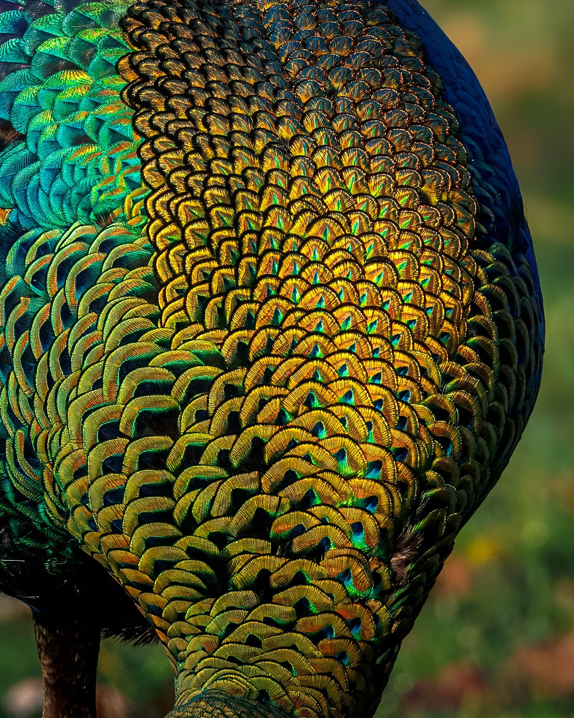 I was hoping to catch this Javan peacock displaying using its huge tail feathers, but when i saw it emerge through the shadows on the track the light looked phenomenal really showing off its vibrant colours. When i opened the shot on my computer i knew i wanted to use this as an abstract detail shot that really focused the amazing patterns.